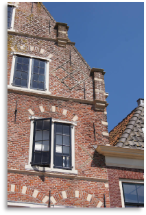 Drie op een rij geeft wel het maximale effect. Je komt het getal 3 ook vaak tegen op gevelstenen.