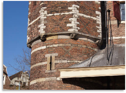 De muurgedeelten met de metseltekens stammen nog uit de begintijd van 1435.