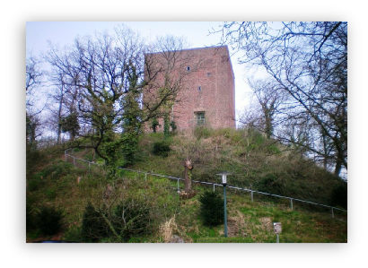 Geen metseltekens op dit oude kasteel. In het Duits heet zo'n onbewoonde vluchtburcht een Bergfried. Wij spreken dan doorgaans van Motte. Vergelijk ook de Motte van Leiden.