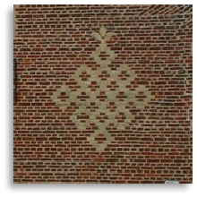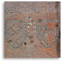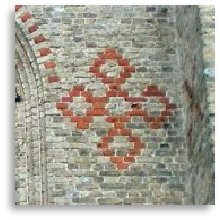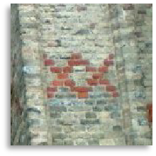A. De tekens die met afwijkende kleur baksteen in muren zijn aangebracht