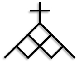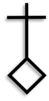 De aard van de tekens, een Latijns kruis of Calvariekruis, kunnen niet echt uitsluitsel geven.