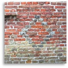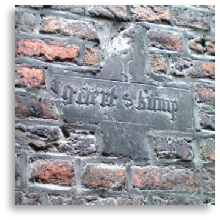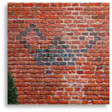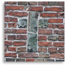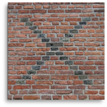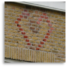 Tekens die met afwijkende kleur baksteen in muren zijn aangebracht