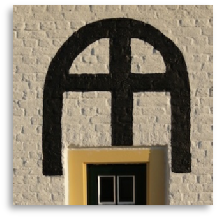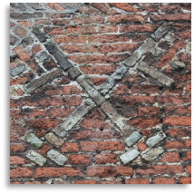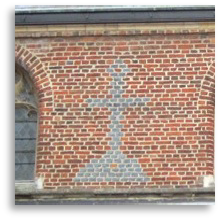 Deze metseltekens zijn we op de vorige bladzijden al tegen gekomen. Ze werden vanaf ca. 1350 tot ca. 1580 in muren van kerken aangebracht en op boerderijen en woonhuizen hielden katholieke eigenaars de gewoonte nog wat langer in stand.