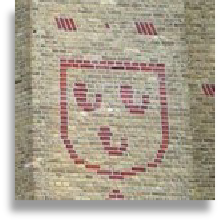 Fraai is het wapen van de Graaf van Horne aan de toren van Loker (BE) en het wapen van Leiden op een hoektoren van de stadsmuur.